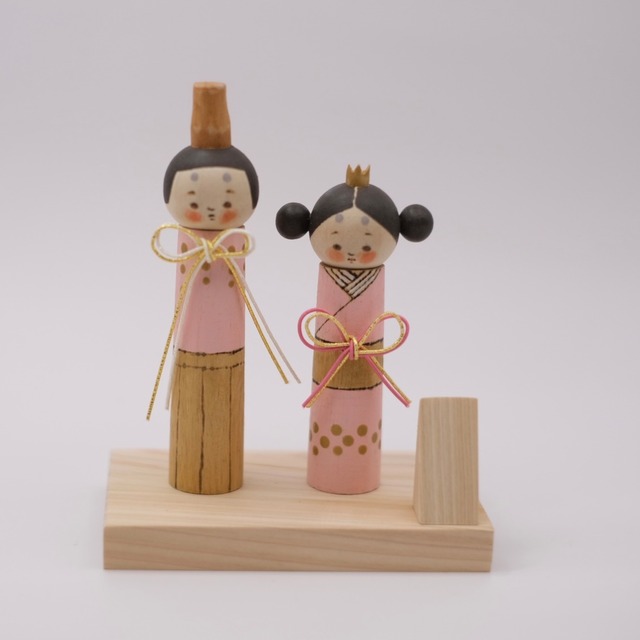 優しい表情の、木の雛人形です。 名前を書く小さなプレート付 男雛 約10.5cm 女雛 約8.5cm