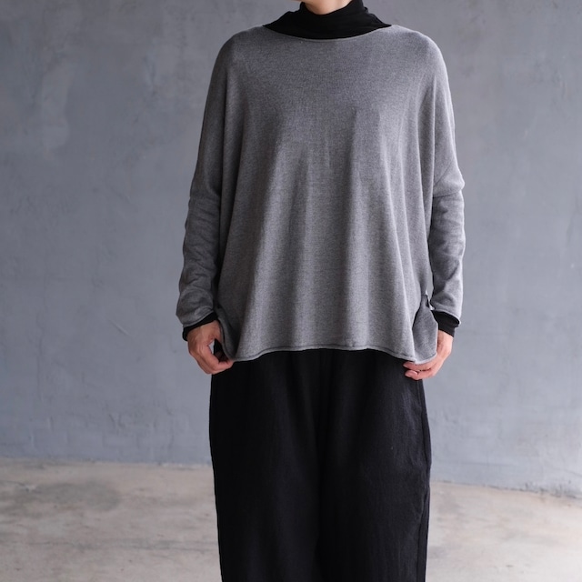 Veritecoeurで人気のTラインプルオーバーです。 コットン・シルク・カシミア混のニットで 肌触りの良い滑らかな手触りです。 身幅がワイドな作りで、ゆとりある着心地。 肩のラインに沿って馴染む綺麗な シルエットで、ボトムを選びません。 size FREE 着丈 59cm 身幅 80cm 肩幅 86cm 袖丈 27.5cm COTTON 60% SILK 30% CASHMERE 10%