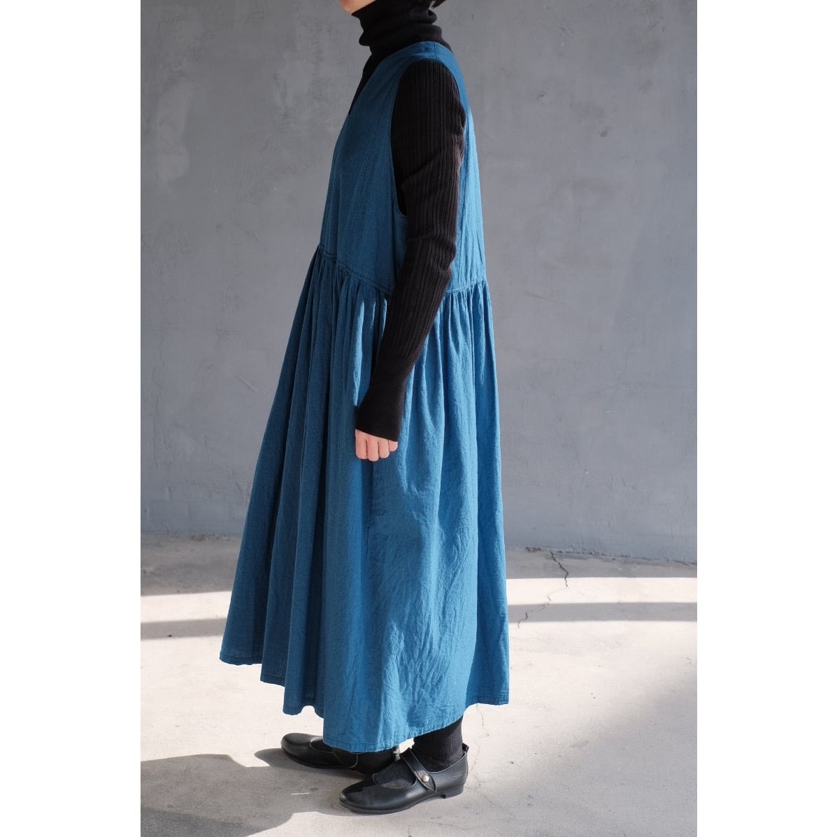 さらっと軽い生地感の明るいインディゴです。