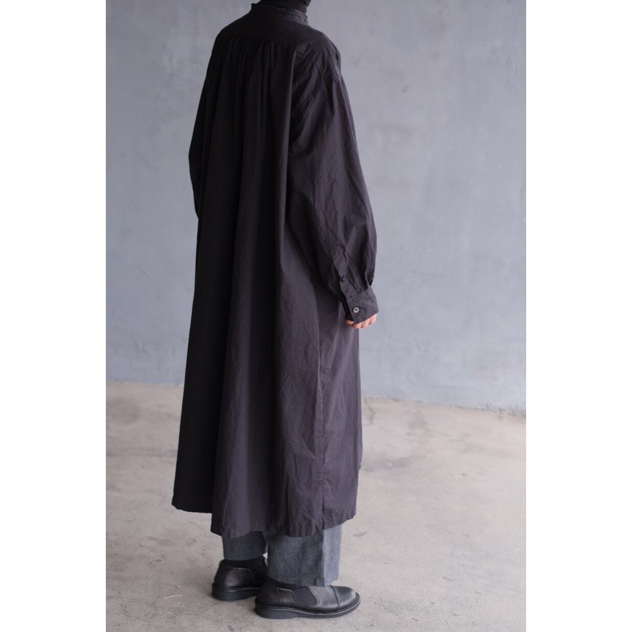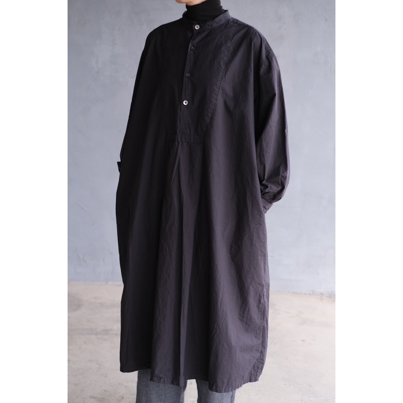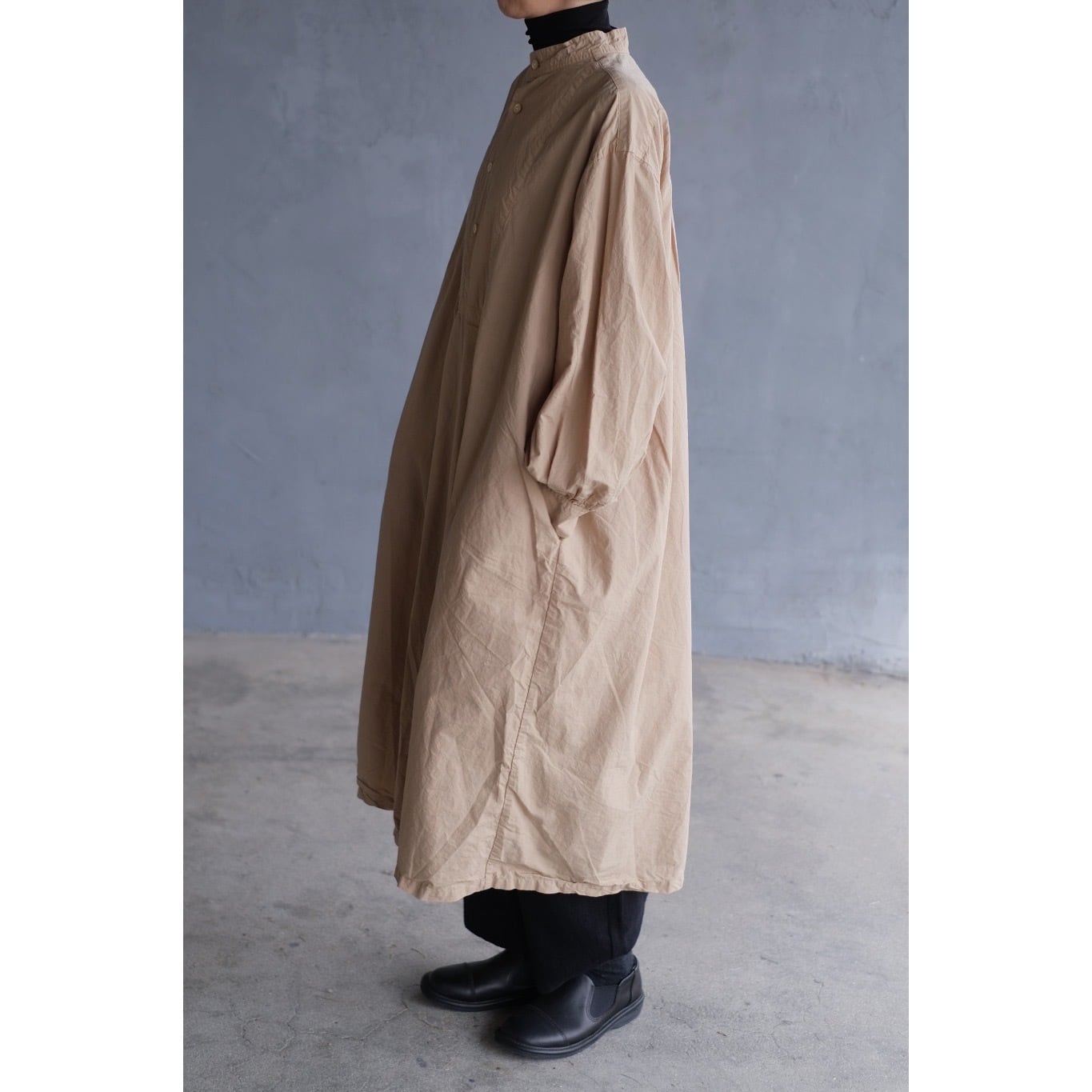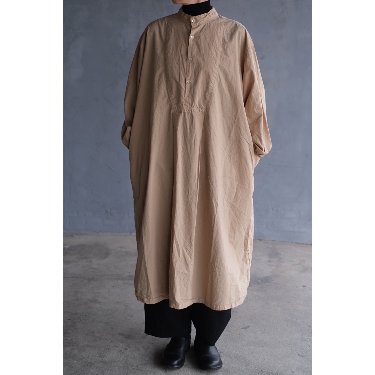 ハリのあるコットンリネンのタイプライター素材で作られたシャツワンピース。