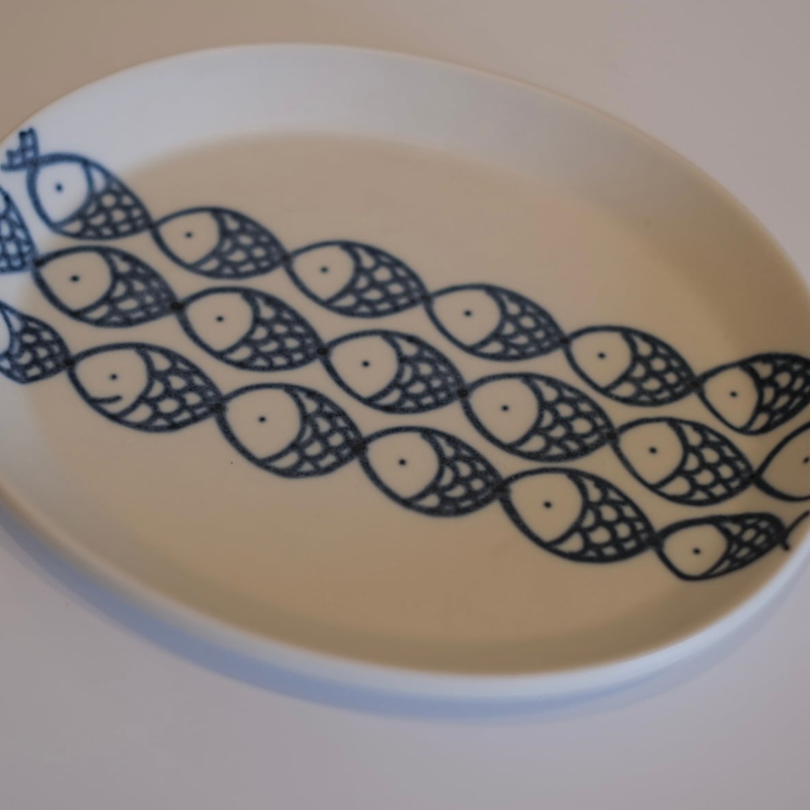 マットな質感なかわいいだ円皿です。