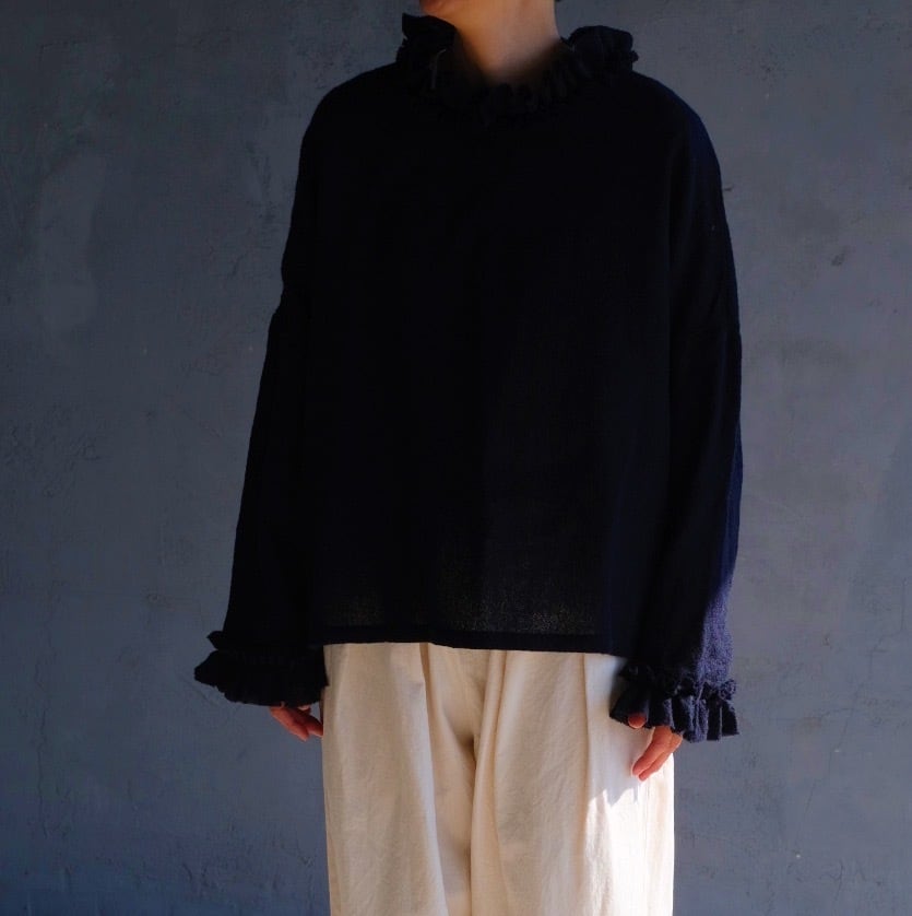 (g)・ウールガーゼネックフリルボックスプルオーバー