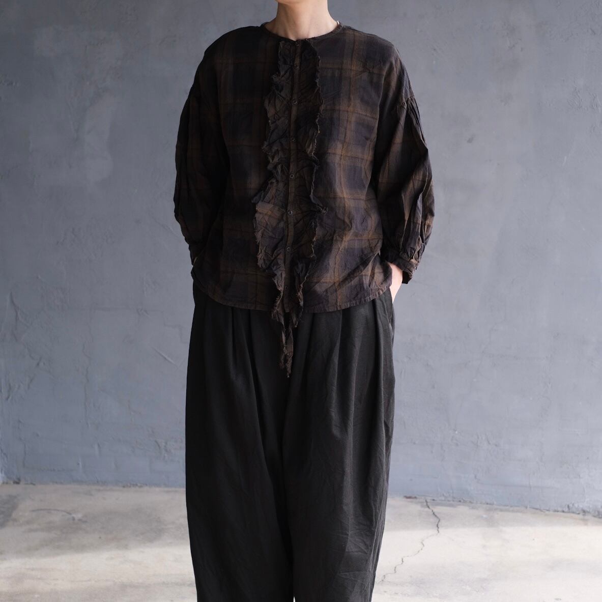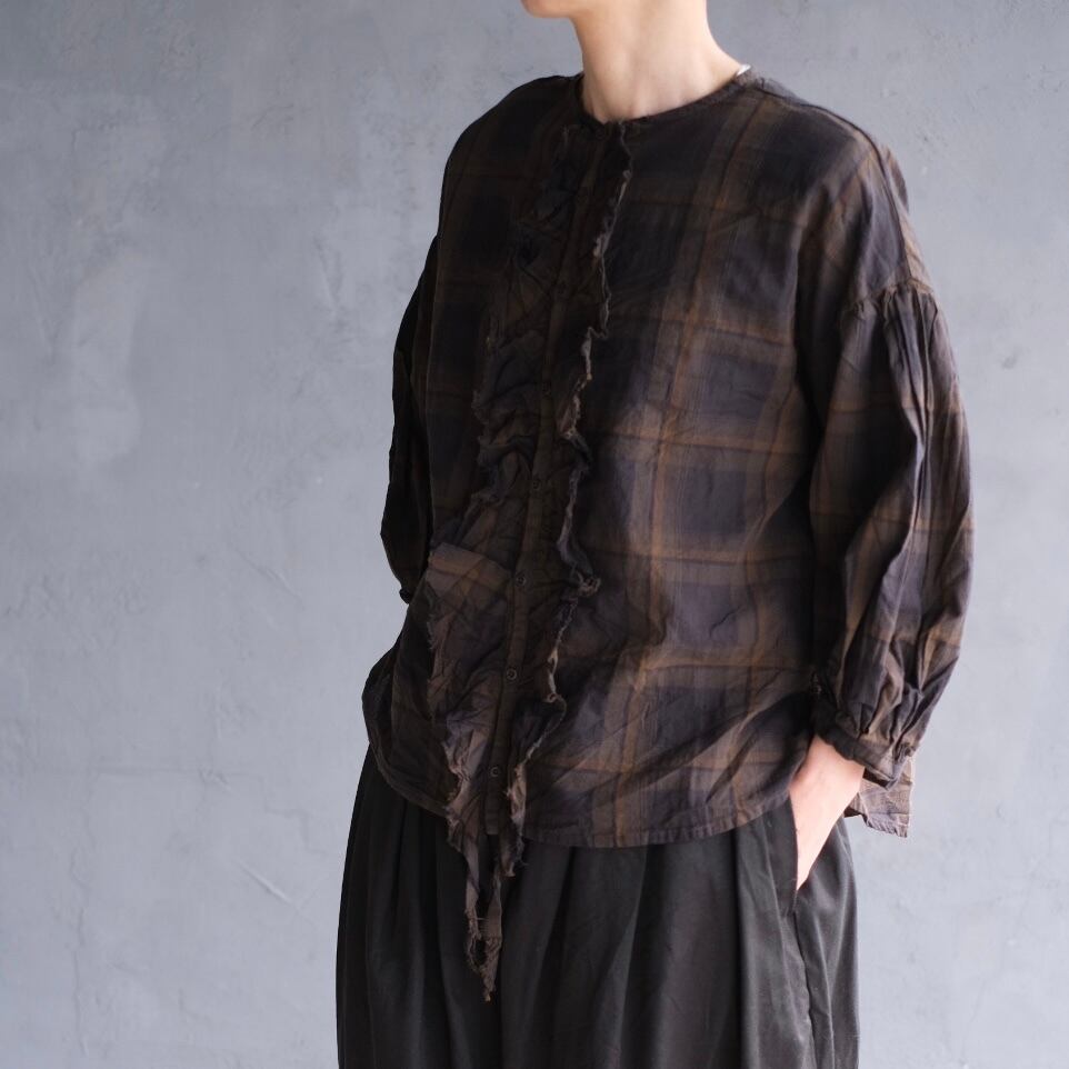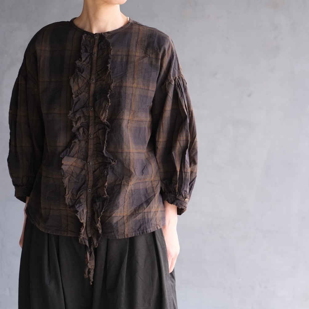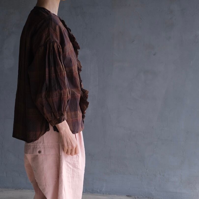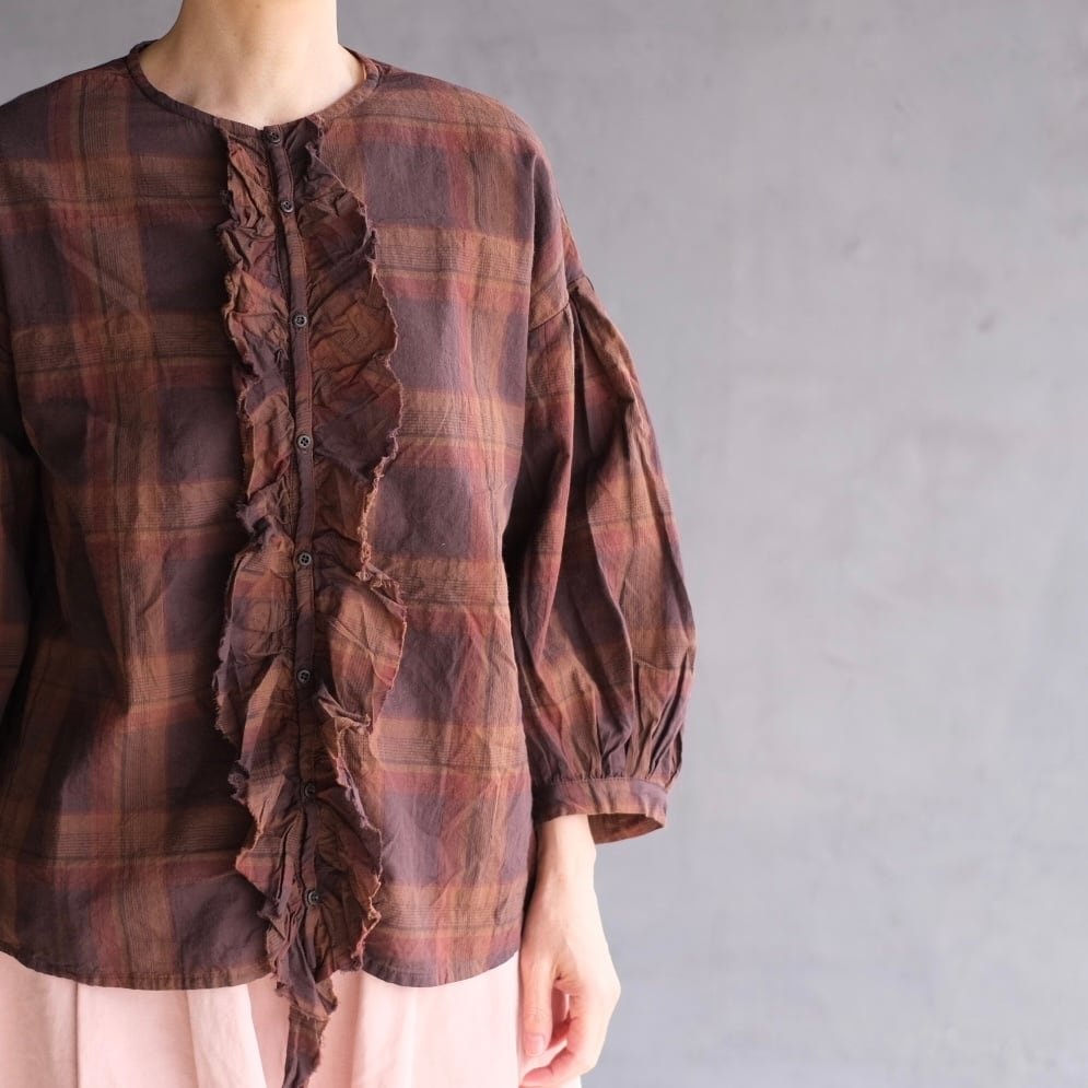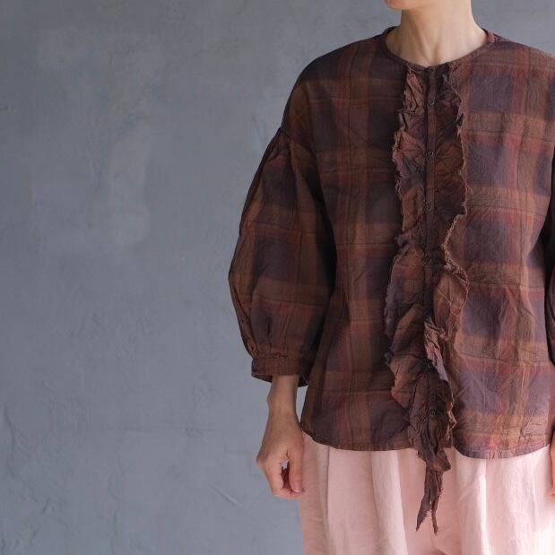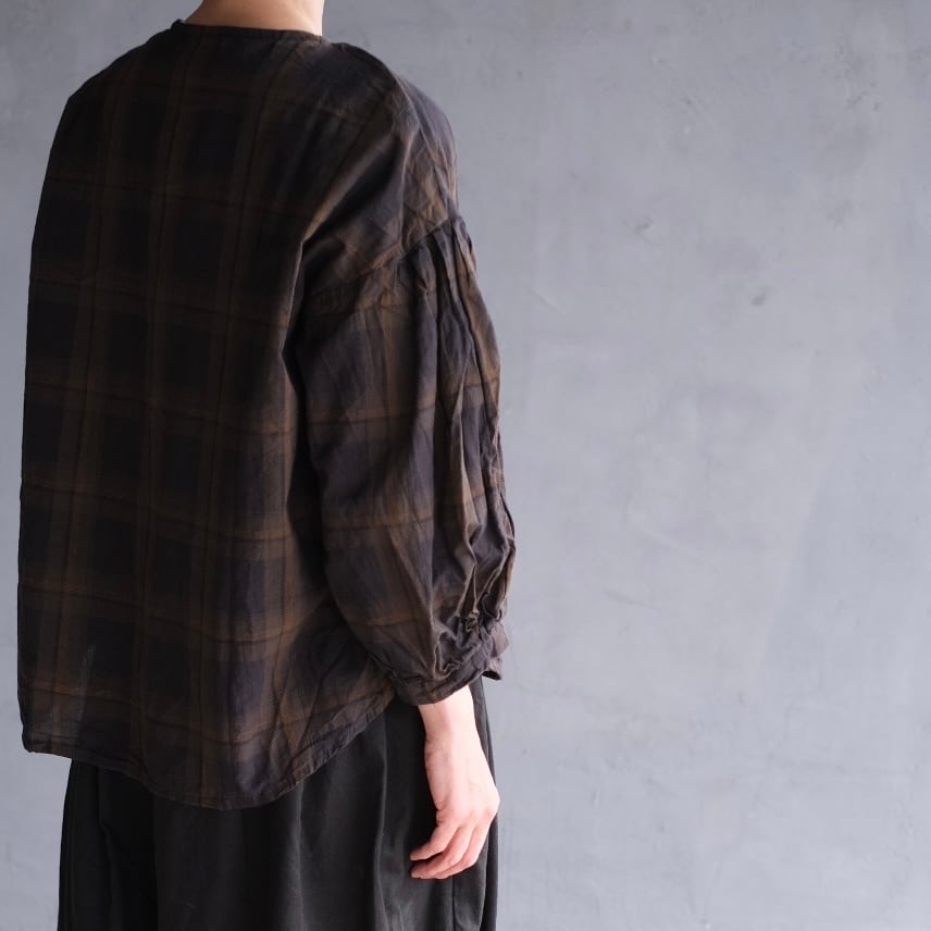 オーガニックコットンならではの、やわらかく軽やかな肌触りが心地よいチェックブラウス。