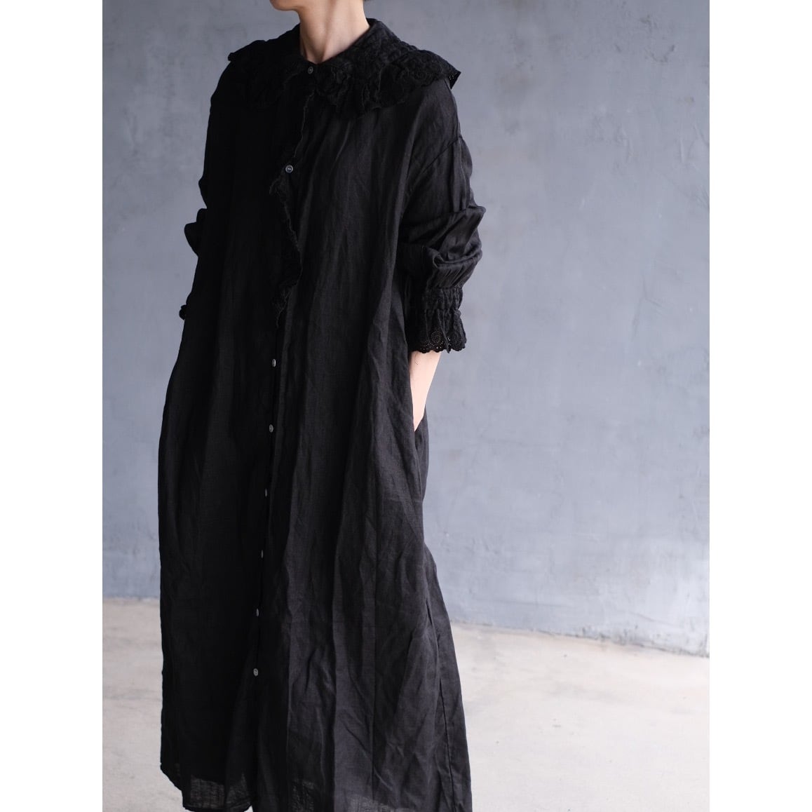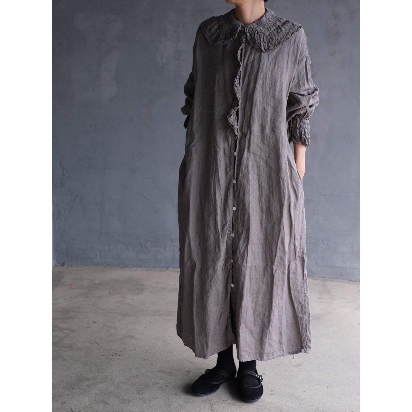 Gauze#/リネンアンティーク フリルワンピース