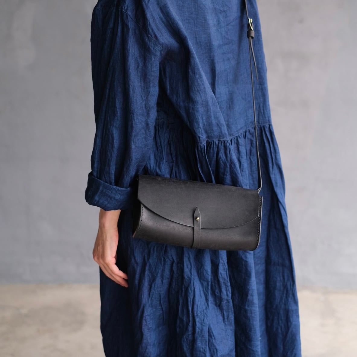 ショルダー紐は長さ調整が可能で、厚手の上着の上からでもお使いいただけます。