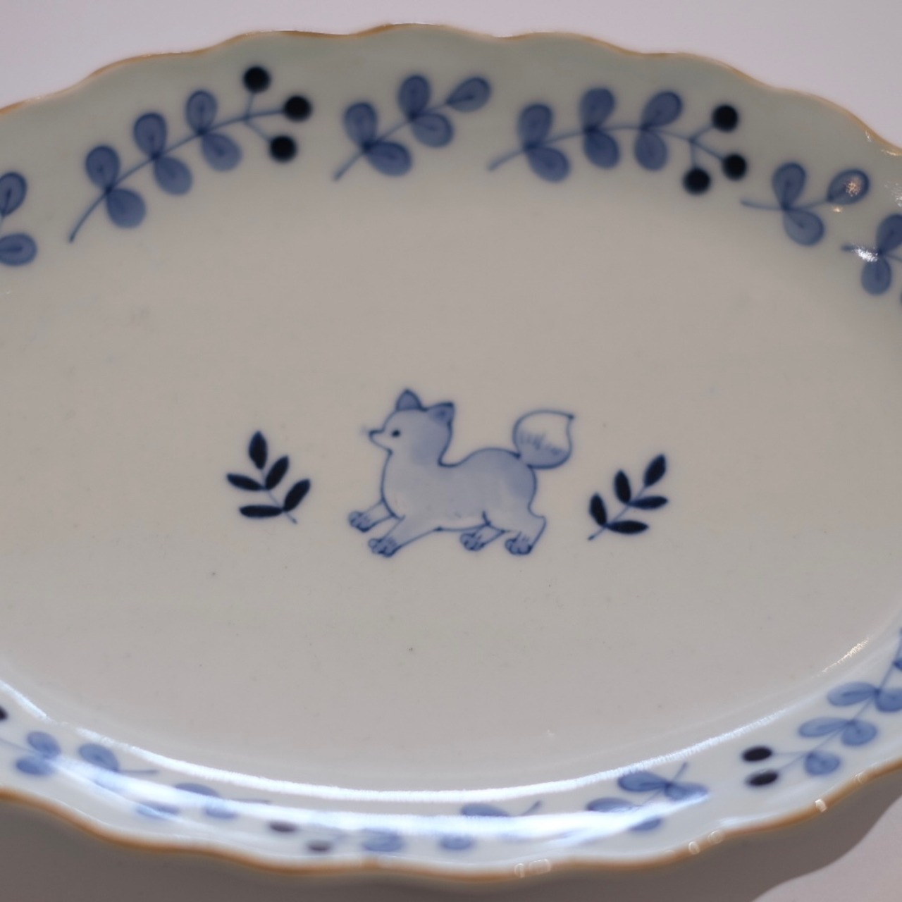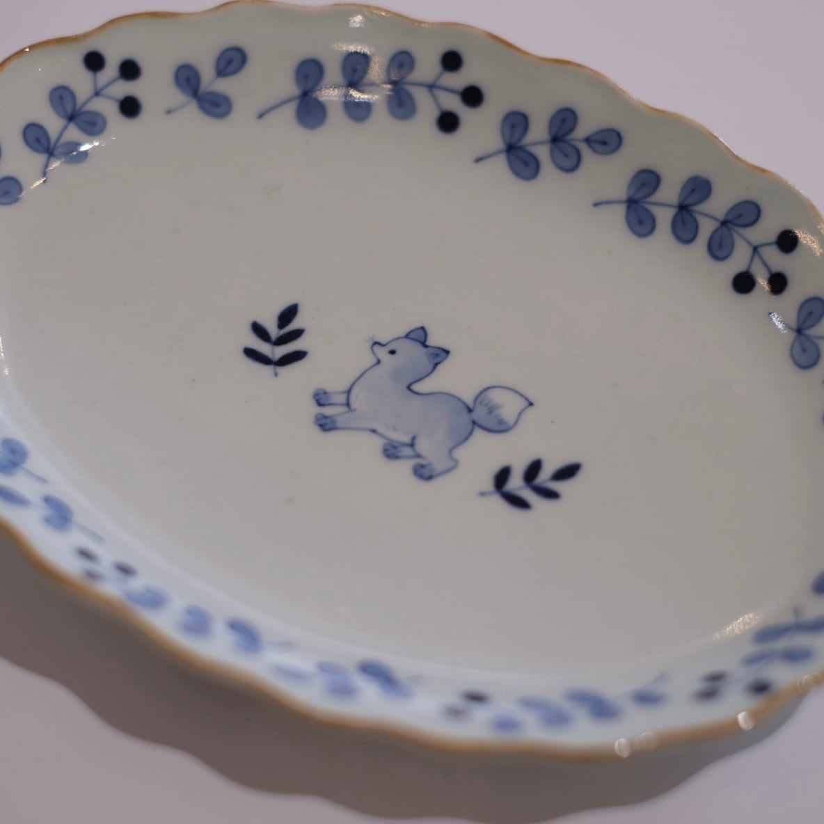 小さな動物たちが描かれた楕円皿。