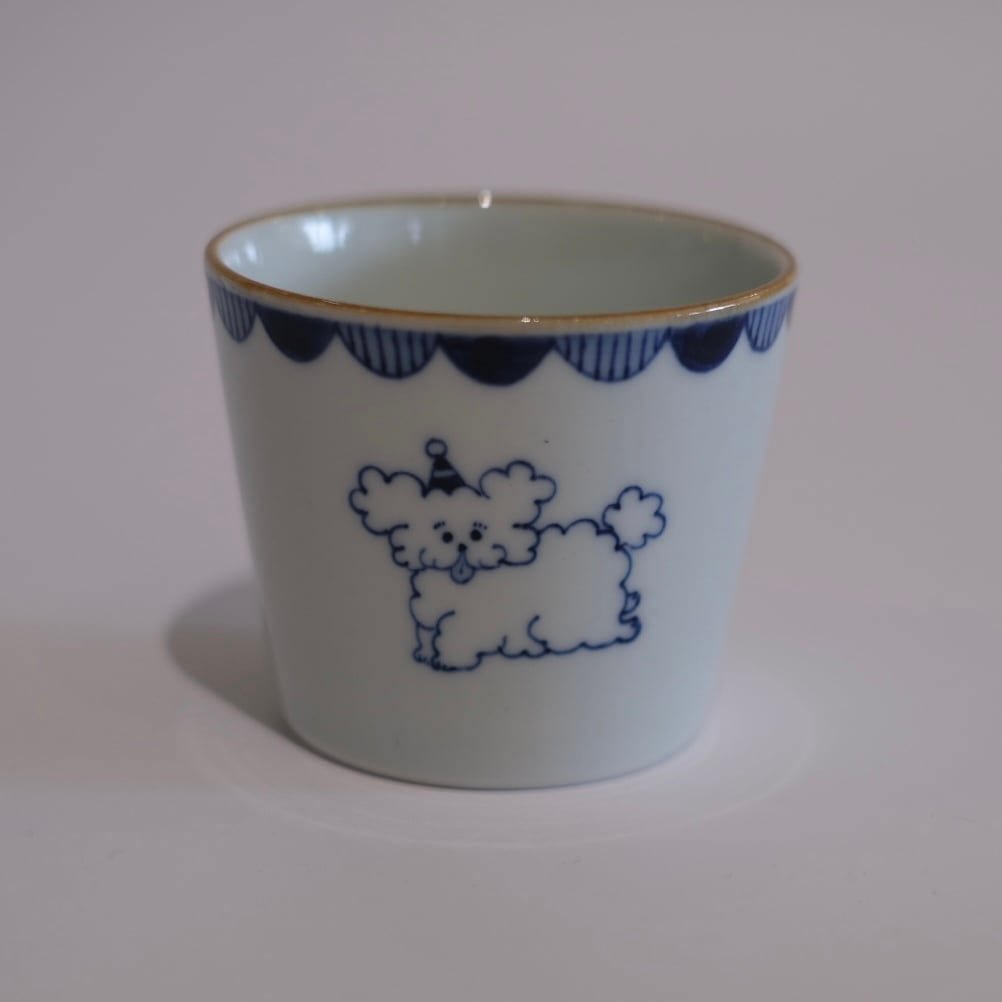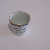 愛らしい動物たちが描かれた染付のカップ。
