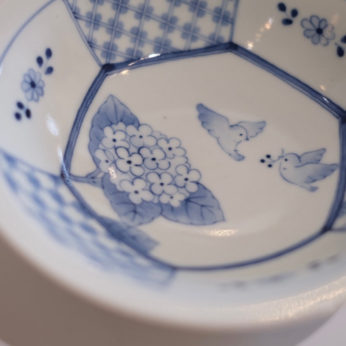 外側にもさりげない草花模様が描かれ、