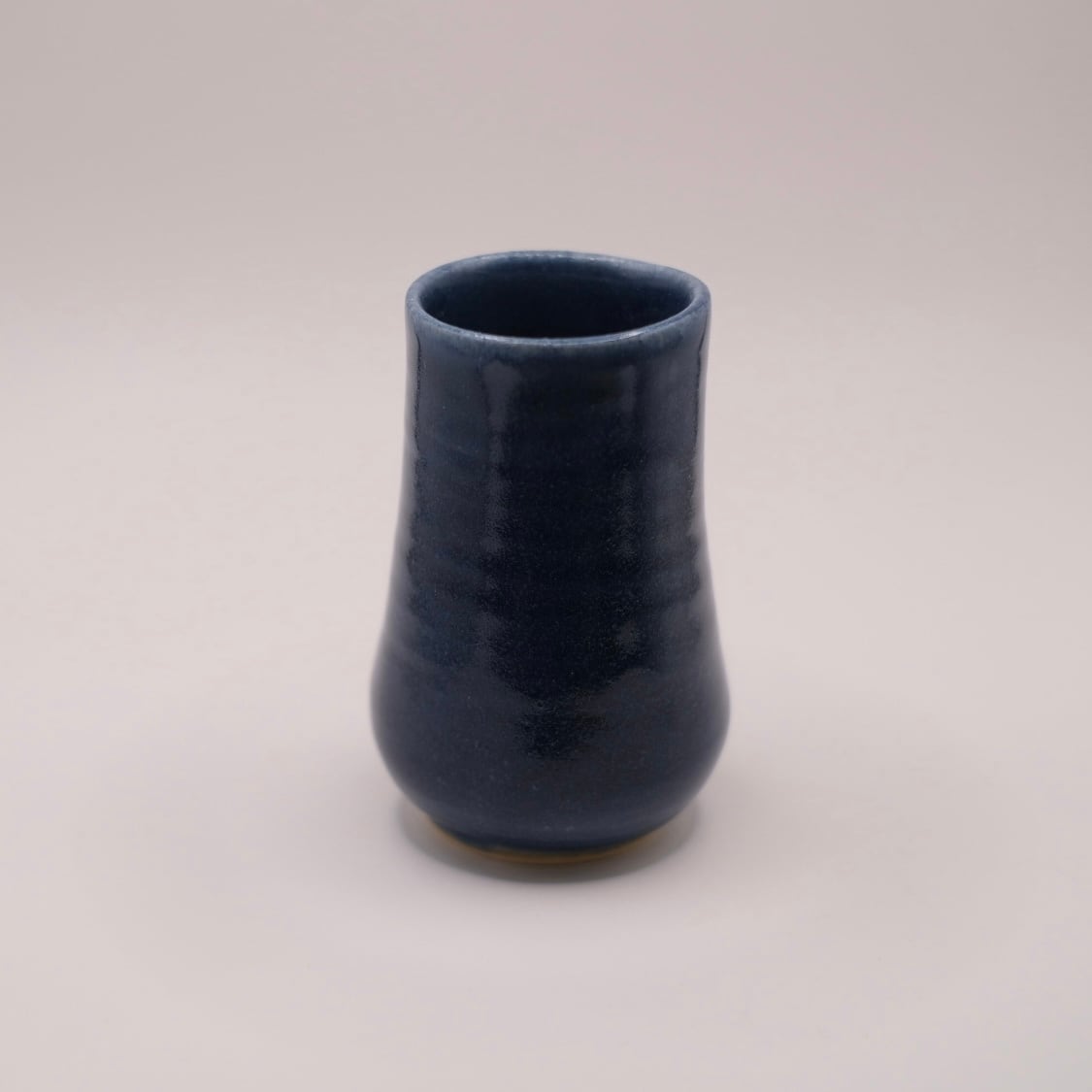 深い濃紺の釉薬と、すっと立ち上がる美しいフォルム。