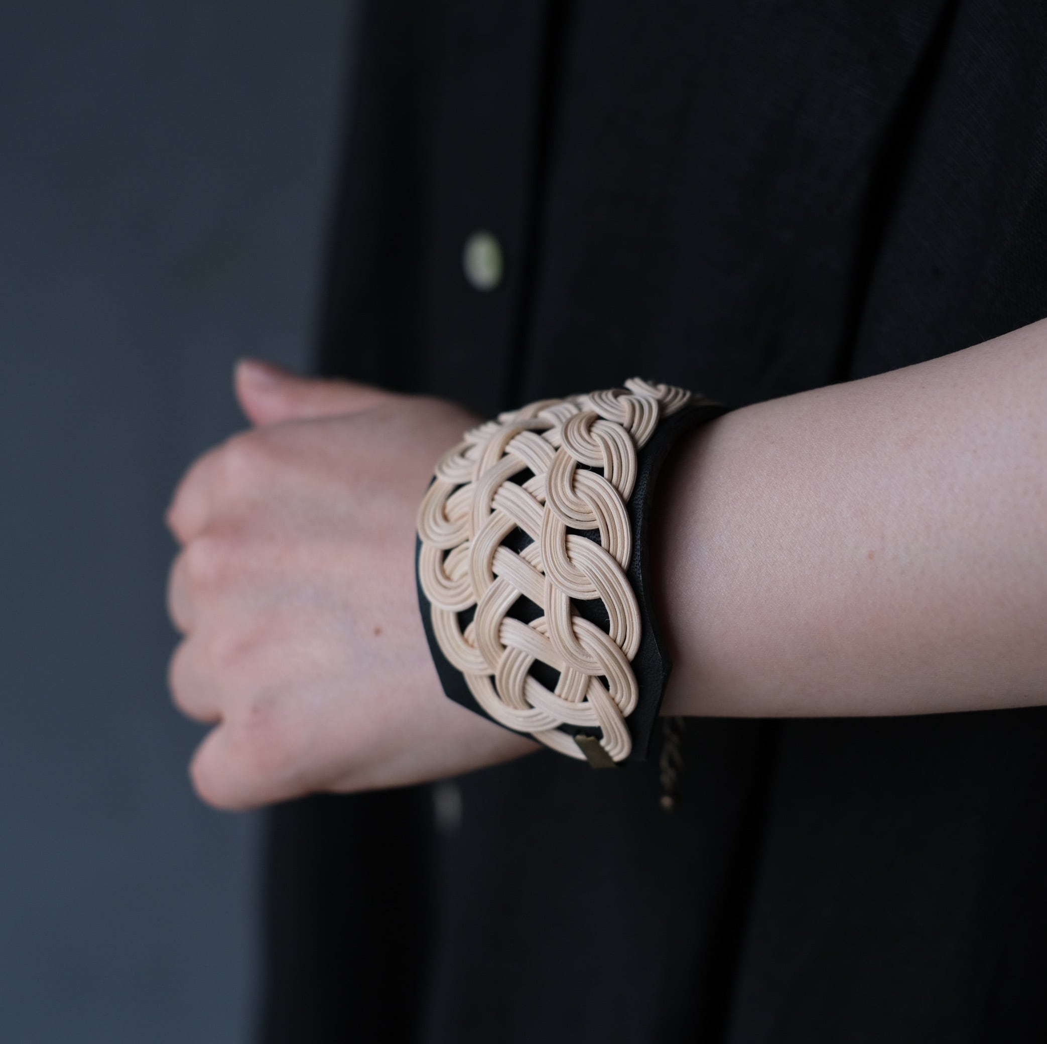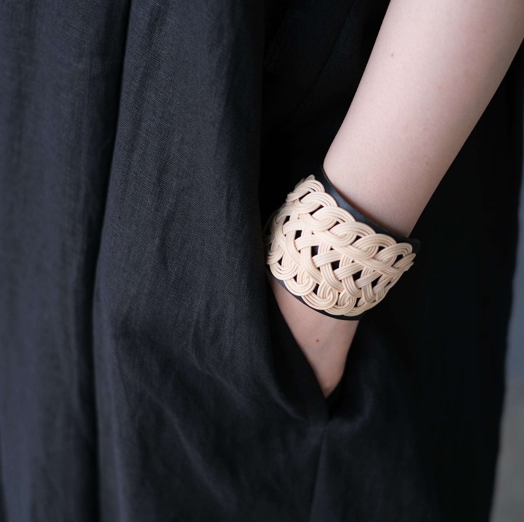 MSNOM/rattan×leatherバングル