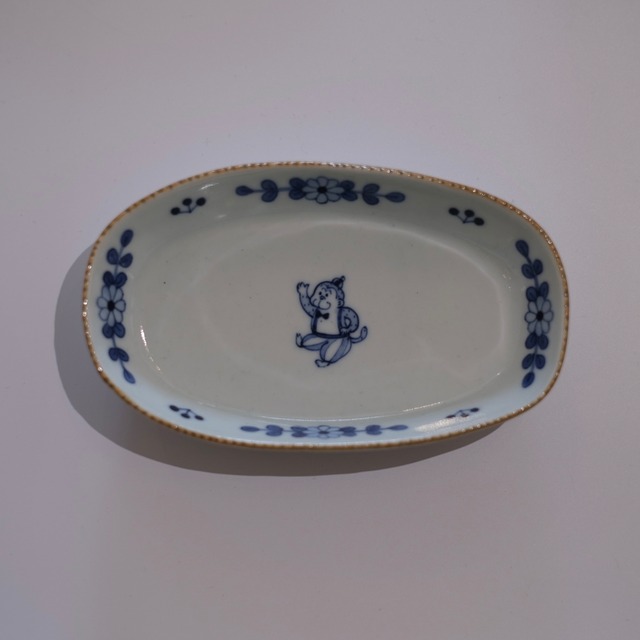 のびのびと走る三匹のねこ。 その上を小鳥がふわりと飛ぶ、 物語のような絵柄の器です。 縁には市松模様、 やわらかな曲線の枠取りや小花模様が入り、 どこか西洋のアンティークのような 可愛らしい雰囲気。 細長い楕円形なので、 焼き魚、前菜の盛り合わせ、 おにぎりやおやつ皿としても使いやすい形です。 食卓に遊び心を添えてくれる一枚です。 ⸻ ◾️サイズ W 約32.2cm D 約14.7cm H 約3.8cm ⸻ ◾️取り扱い 電子レンジ ○ 食洗機 ○ ※直火・オーブン不可