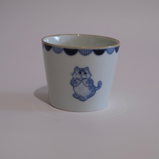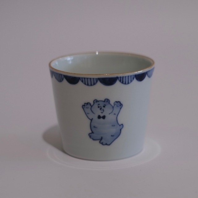 やわらかな白磁に、 愛らしい動物たちが描かれた染付のカップ。 くま、わに、ねこ、いぬ、ぞうなど、 それぞれ少しユーモラスな表情と仕草。 帽子をかぶっていたり、 花を持っていたり、 写真を撮っていたりと、 まるで小さな物語のワンシーンのようです。 縁には藍色のスカラップ模様。 クラシカルな雰囲気の中に、 遊び心のある可愛らしさが感じられます。 お茶やコーヒー、 デザートカップとしても。 柄違いで揃えたくなる楽しい器です。 ⸻ ◾️サイズ φ8.5cm H7.2cm ⸻ ◾️取り扱い 電子レンジ ○ 食洗機 ○ ※直火・オーブン不可 ※手作業のため、絵柄や色合いに個体差があります ※小さな鉄点や釉薬の濃淡が見られる場合がありますが、器の風合いとしてお楽しみください。
