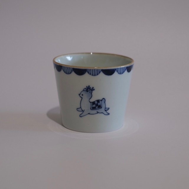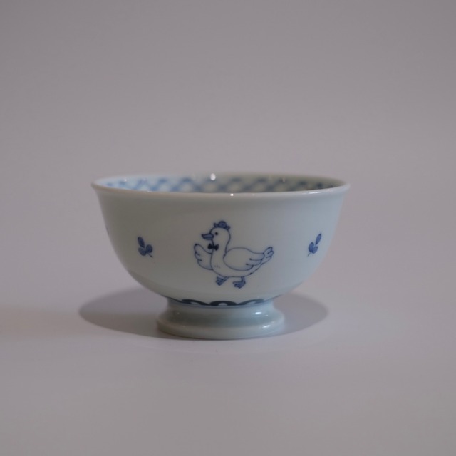 いろいろな動物たちが描かれた、 見ているだけで楽しい染付の碗です。 内側の縁には市松模様、 外側には小さな草花の模様。 どこか昔の絵本のような、 やさしい雰囲気の器です。 少し高台のある形で持ちやすく、 スープ碗やご飯茶碗としてちょうどよいサイズ。 食卓にやさしい遊び心を添えてくれる一碗です。 ⸻ ◾️サイズ φ12.2cm H7cm ⸻ ◾️取り扱い 電子レンジ ○ 食洗機 ○ ※直火・オーブン不可